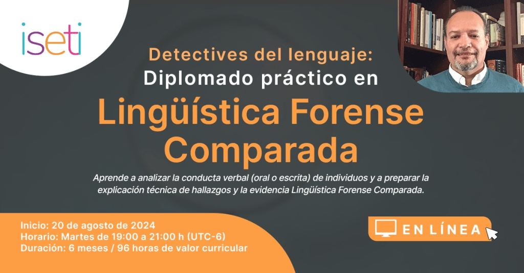 Second Edition of the Online Six Month Postgraduate Diploma in Practical Comparative Forensic Linguistics at Instituto Superior de Estudios de Traducción e Interpretación de México, ISETI. Required for enrollment: proven fluency in Spanish & English. Questions and registration: https://iseti.org.mx/cursos/98-diplomado-practico-en-lingueistica-forense-comparada