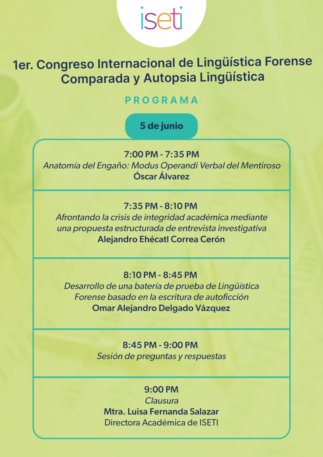 On June 4th. & 5th, 2024, We celebrated the First International Conference of Comparative Forensic Linguistics & Linguistic Autopsy at Instituto Superior en Interpretación y Traducción de México.